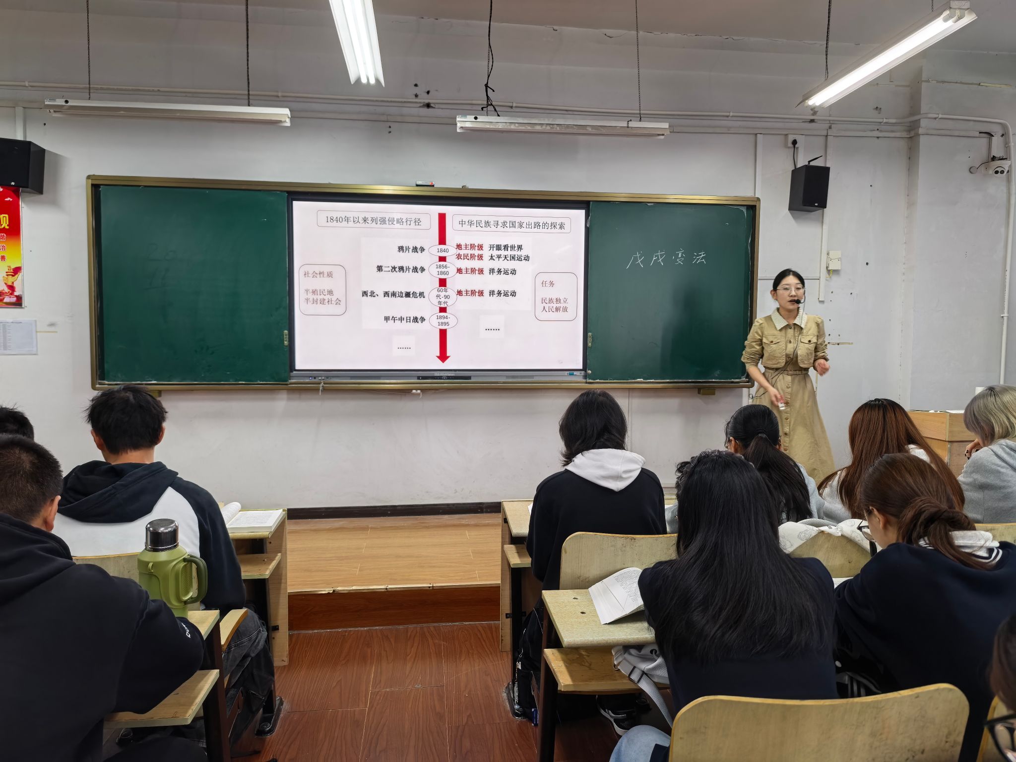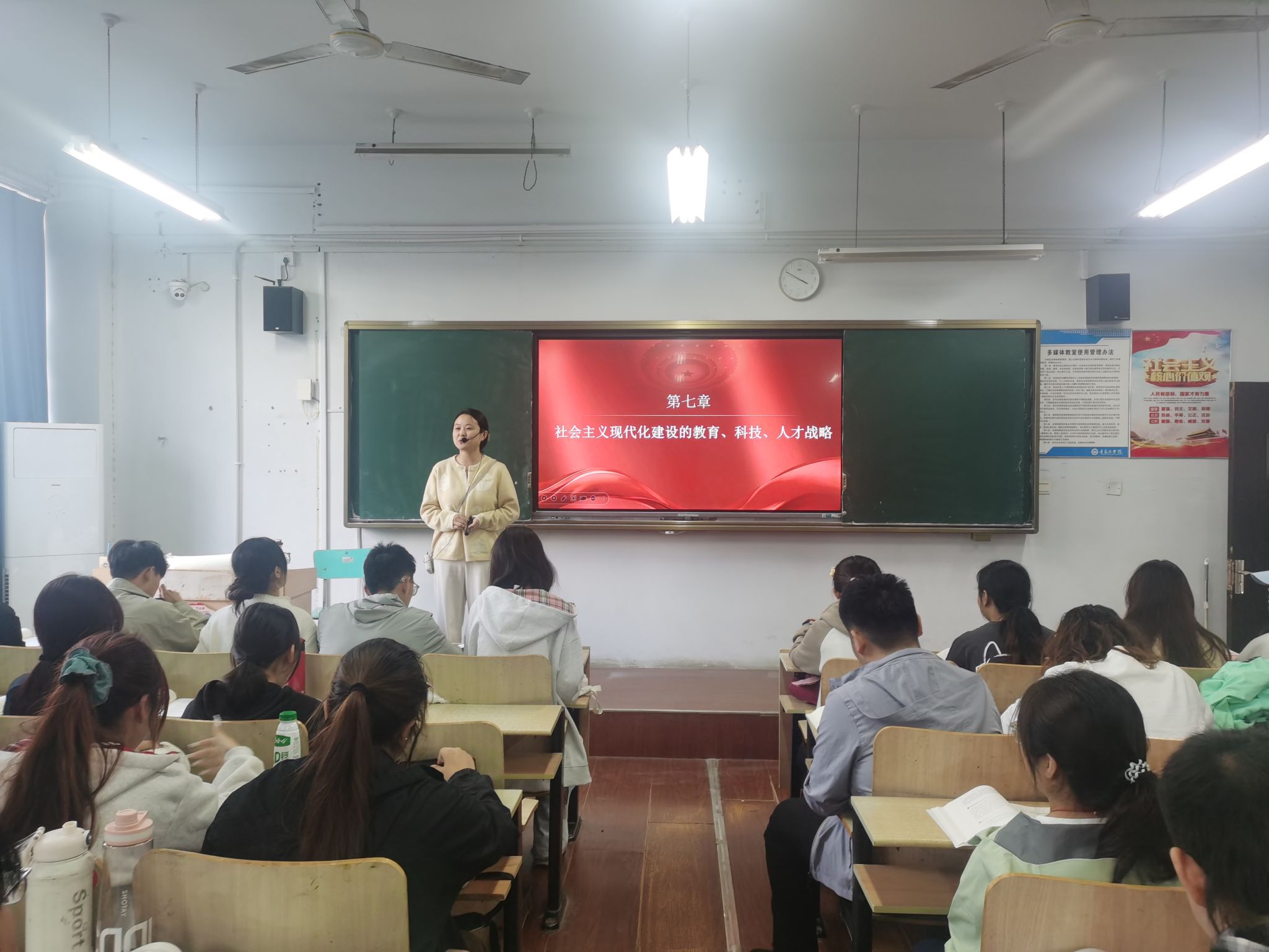 在具体听课安排中,各听课小组精准对接不同课程与授课教师,实现靶向指导:刘连新校长、王莹副校长与刘恩超教授组成听课组,走进王楠老师的《中国近现代史纲要》课堂,重点关注课程中革命文化、社会主义先进文化的融入深度,以及对学生历史认知的引导效果;周有波书记、李占军副校长与韩明暖教授共同听取孙晨老师的《思想道德与法治》授课,围绕课程对学生思想动态的关注程度、价值引领的实施路径展开细致观察;任传波副校长、李君副校长与教务处李教授聚焦王洁老师的《中国近现代史纲要》课堂,着重评估教学方法创新与师生互动实效,考察结构化研讨、案例式教学的运用情况;邢林副书记、李伟副校长、周朝晖副监事长与刘华义教授则共同听取高占红老师的《习近平新时代中国特色社会主义思想概论》课程,重点督导党的理论创新最新成果、新时代伟大变革成就的教学融入度,确保课程守正创新、内涵扎实。